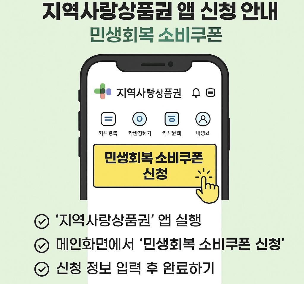 - A3. ① 온라인 – 카드사 앱, 지역사랑상품권 앱, 국민비서 등. ② 오프라인 – 주민센터, 제휴 은행 영업점에서도 신청 가능하며, 고령·장애인용 '찾아가는 신청'도 운영 중입니다.